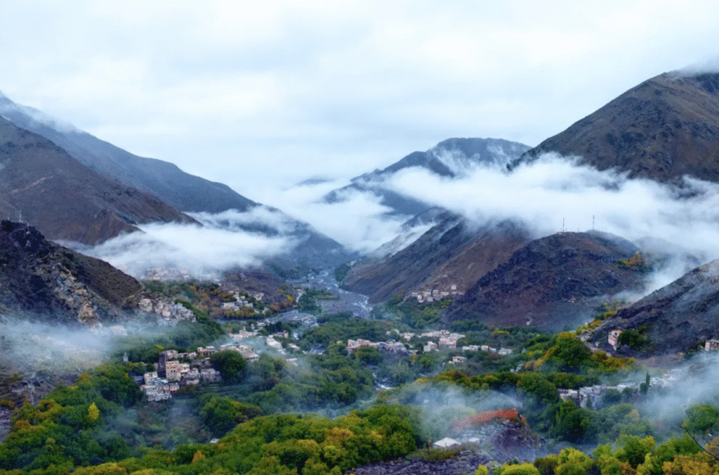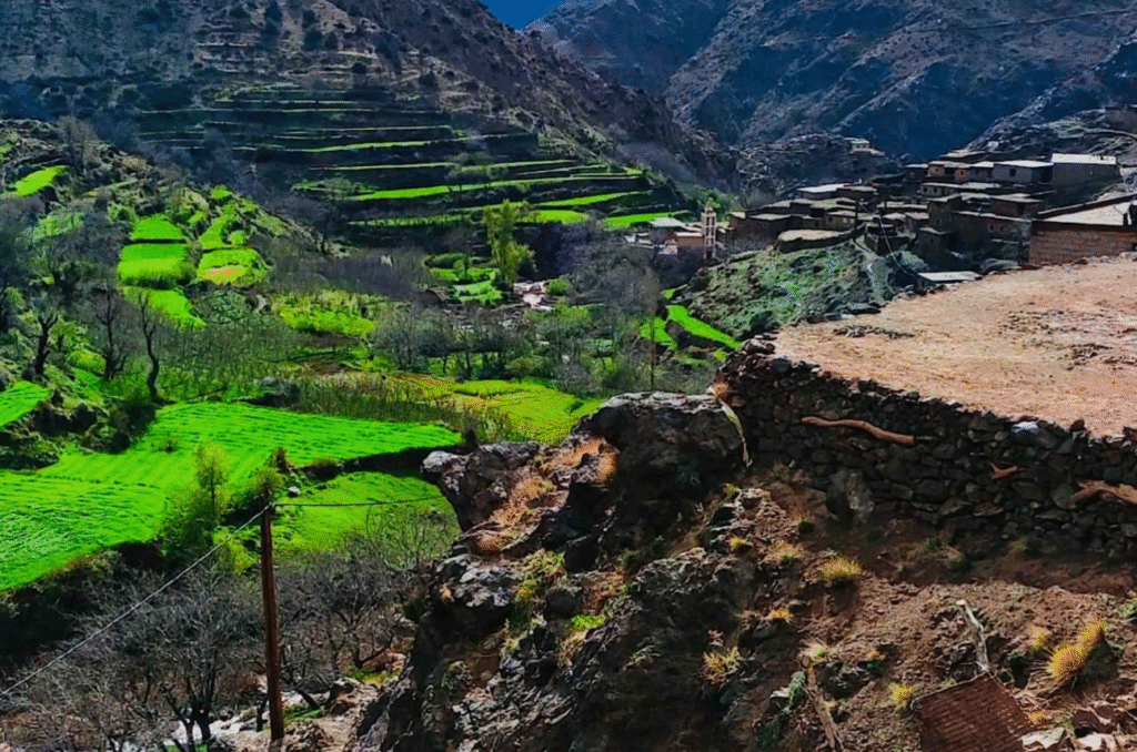 Imlil is the gateway to countless hiking trails that lead into the heart of the Atlas. Trekkers from around the world begin their journeys here, greeted by friendly locals offering mint tea and words of encouragement. Yet you don’t need to climb Toubkal to feel the magic — even a simple walk through the valley reveals waterfalls, walnut trees, and stone houses clinging to the hillsides.
